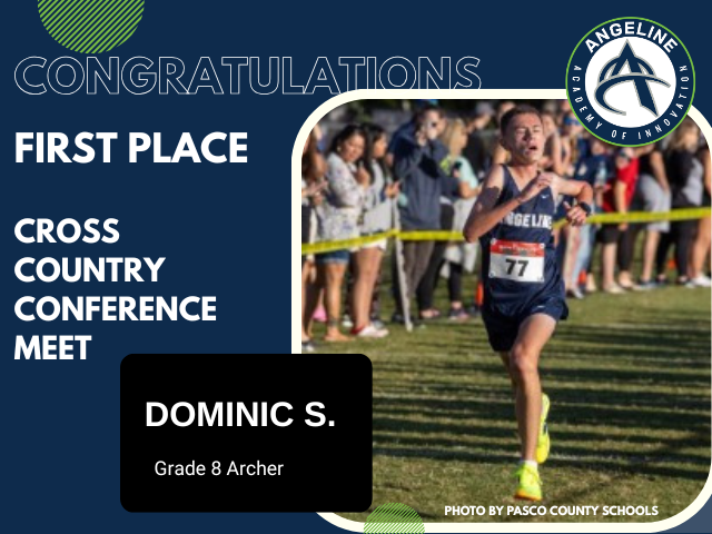 8th grader Dominic S. is a Conference Champion!!! He placed first in the West Side High School Boys Cross Country Conference Meet! Setting our new school record at 16:01!