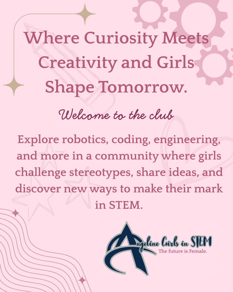 Angeline Girls in STEM is a student-led club dedicated to bringing together young women who are passionate about science, technology, engineering, and math. Our mission is to break down gender stereotypes and create a welcoming space where girls can explore their interests, experiment with new ideas, and develop confidence in their abilities. Through collaboration, discussion, and hands-on exploration, members build a strong community that encourages curiosity, creativity, and innovation. We are working with our female teachers as mentors to create a supportive school environment where students can grow, learn, and be inspired in STEM.